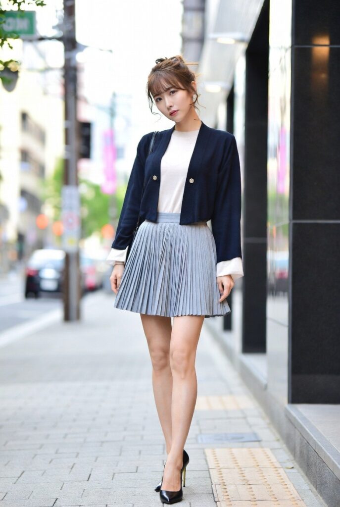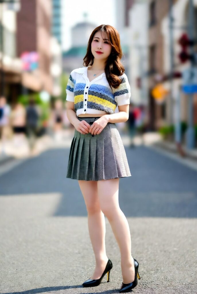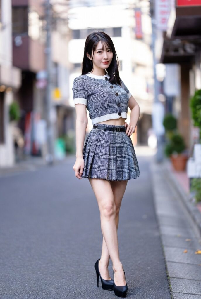 街を歩くだけで周囲の視線を集めてしまう、美脚の持ち主。風になびくブリーツスカートの隙間から、ほんの一瞬のきらめきをとらえました。