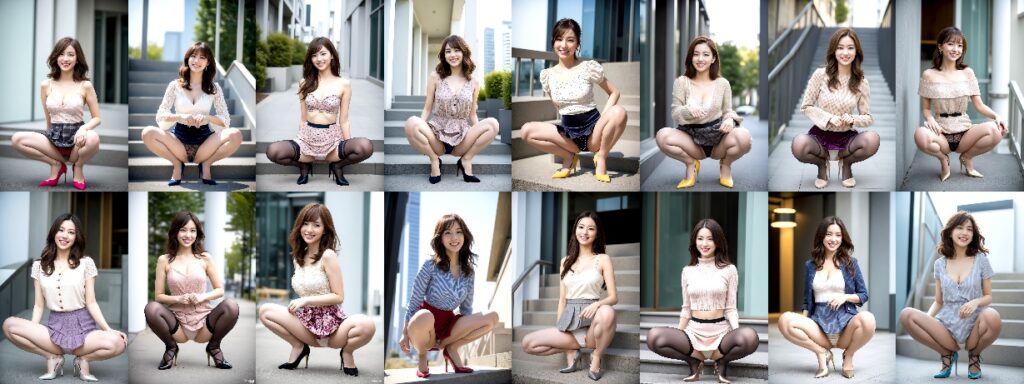 会社で誰もが振り返るほどの圧倒的美貌を持つOL。そんな彼女がふとしゃがんだ瞬間、スカートの奥にちらりと見える世界。ハイヒール、ミニスカート、パンストなど、多様な服装スタイルで魅せるその瞬間は、上品さと艶っぽさが絶妙に溶け合う芸術です。完璧な美脚ラインと洗練された動作を、じっくりとお楽しみください。