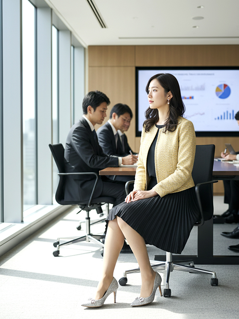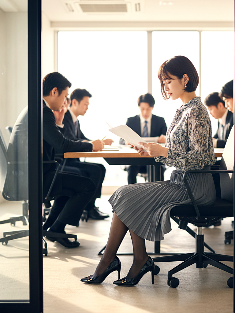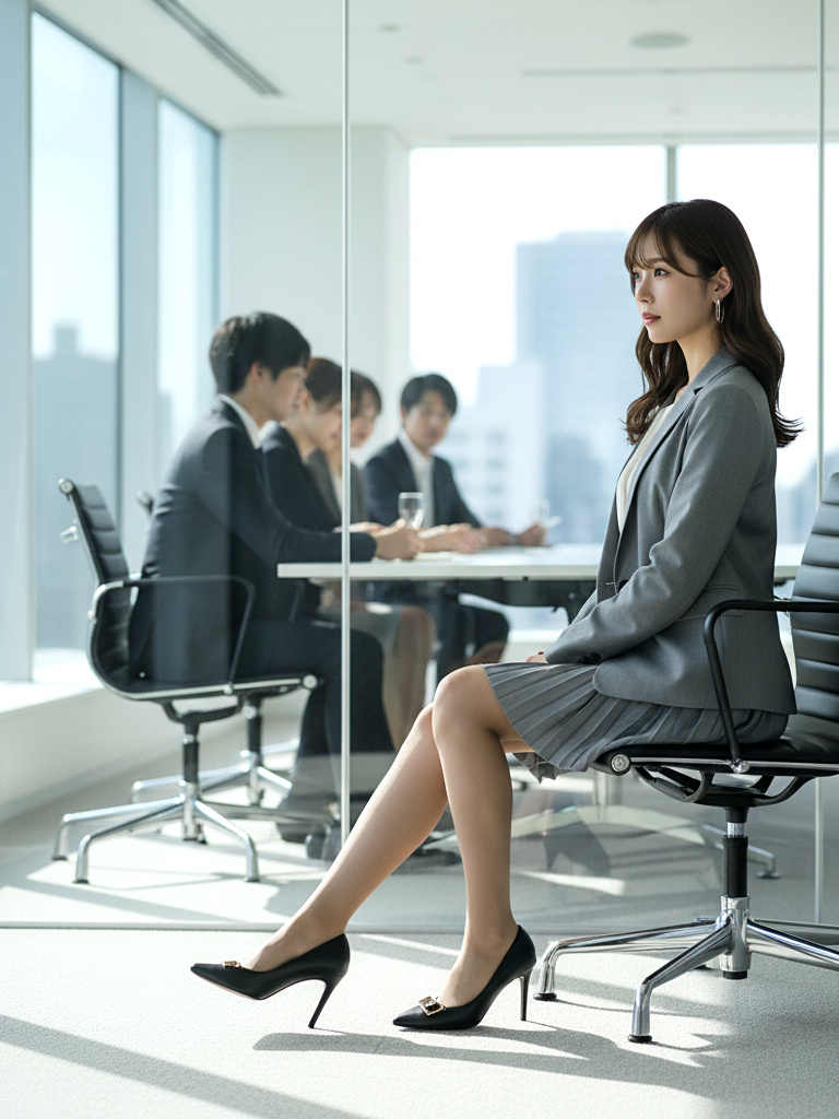 静かな会議室に潜む、密かな緊張と誘惑を切り取った作品です。