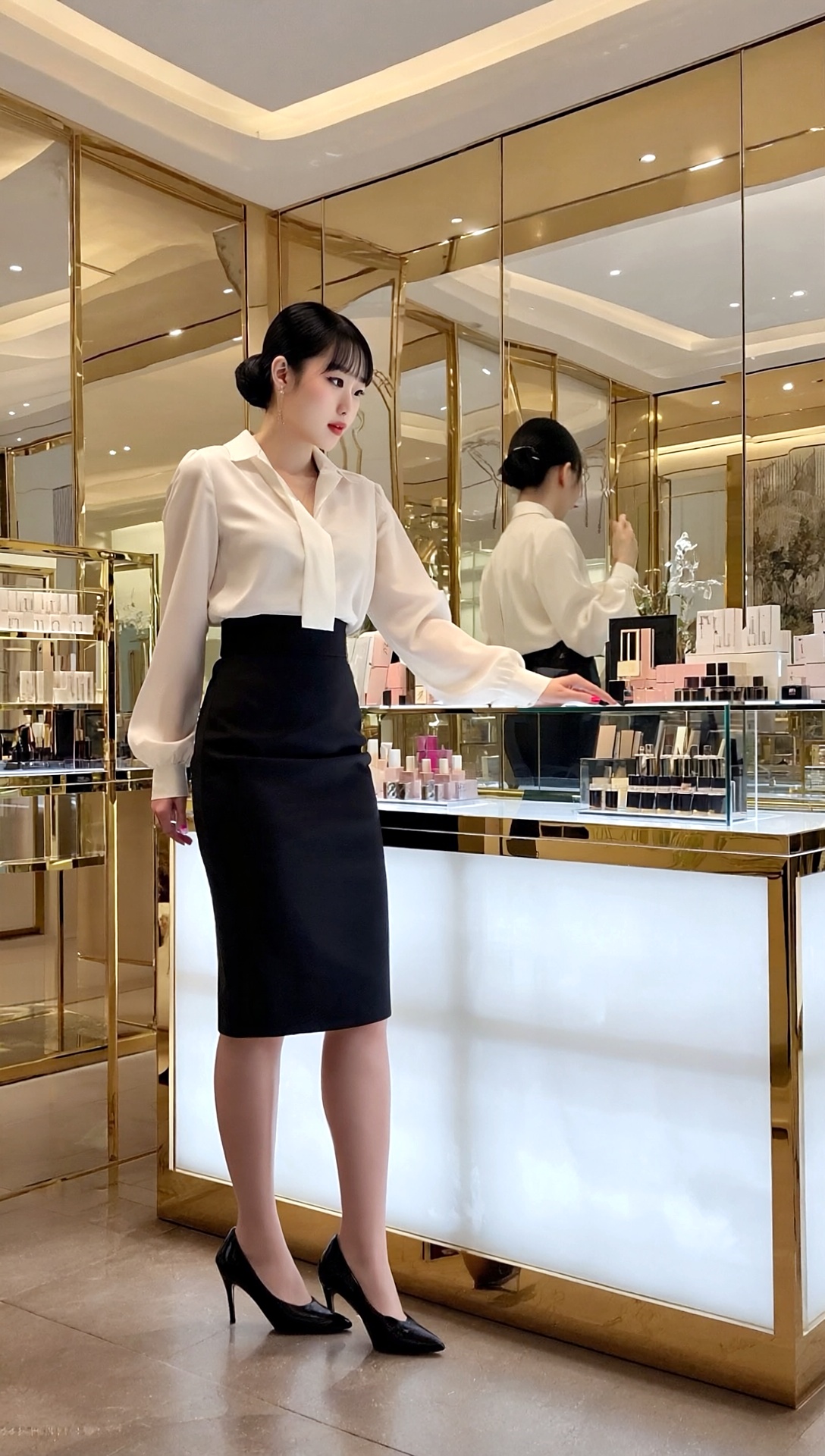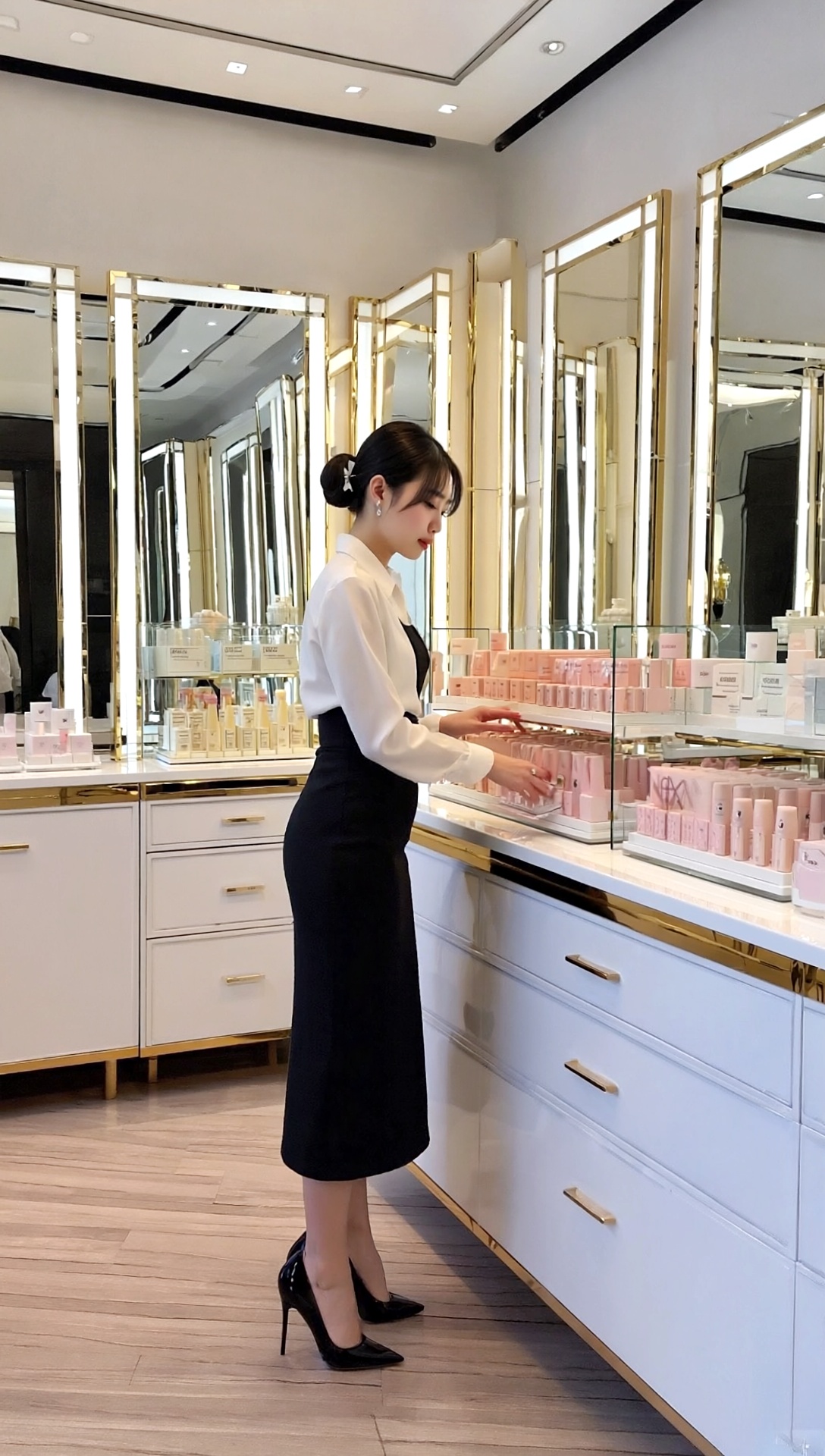 彼女たちの仕事ぶりは、ただ商品を売るだけではない。最新の美容知識はもちろん、一人ひとりのお客様の肌質や悩みに寄り添い、最適なアドバイスをする。その丁寧な言葉遣いや、的確な提案は、まさにプロフェッショナルそのもの。きらびやかな百貨店の空間で、彼女たちは「働くオンナ」としての輝きを放っている。その美しさは、生まれ持ったものだけでなく、日々の努力と、美への探求心によって磨き上げられているのだろう。