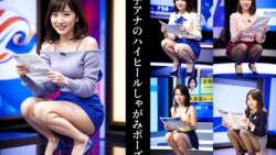 清楚で上品な女子アナがしゃがみながらニュースを呼んでくれる番組の映像です。しかも、ハイヒールパンプスとミニスカート姿で、瞬きすることすらもったいないほどの美脚です。 高画質版はコチラから参照可能です。
