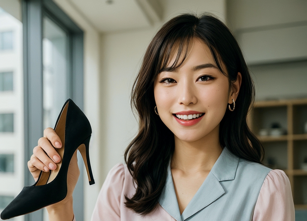 その日、オフィスでの彼女はいつも通り、デキる女のオーラを放っていた。しかし、ふとした瞬間、彼女の表情がふっと緩んだかと思うと、何気ない仕草でパンプスを脱ぎ始めたのだ。そして、驚くべきことに、脱ぎたてのパンプスを片方だけ手に取り、それを自分の顔の横にそっと持ち上げた。その瞳は、どこか挑発的でもあり、それでいて甘い誘惑を秘めているかのよう。こちらをじっと見つめるその視線に、思わず息をのんでしまった。